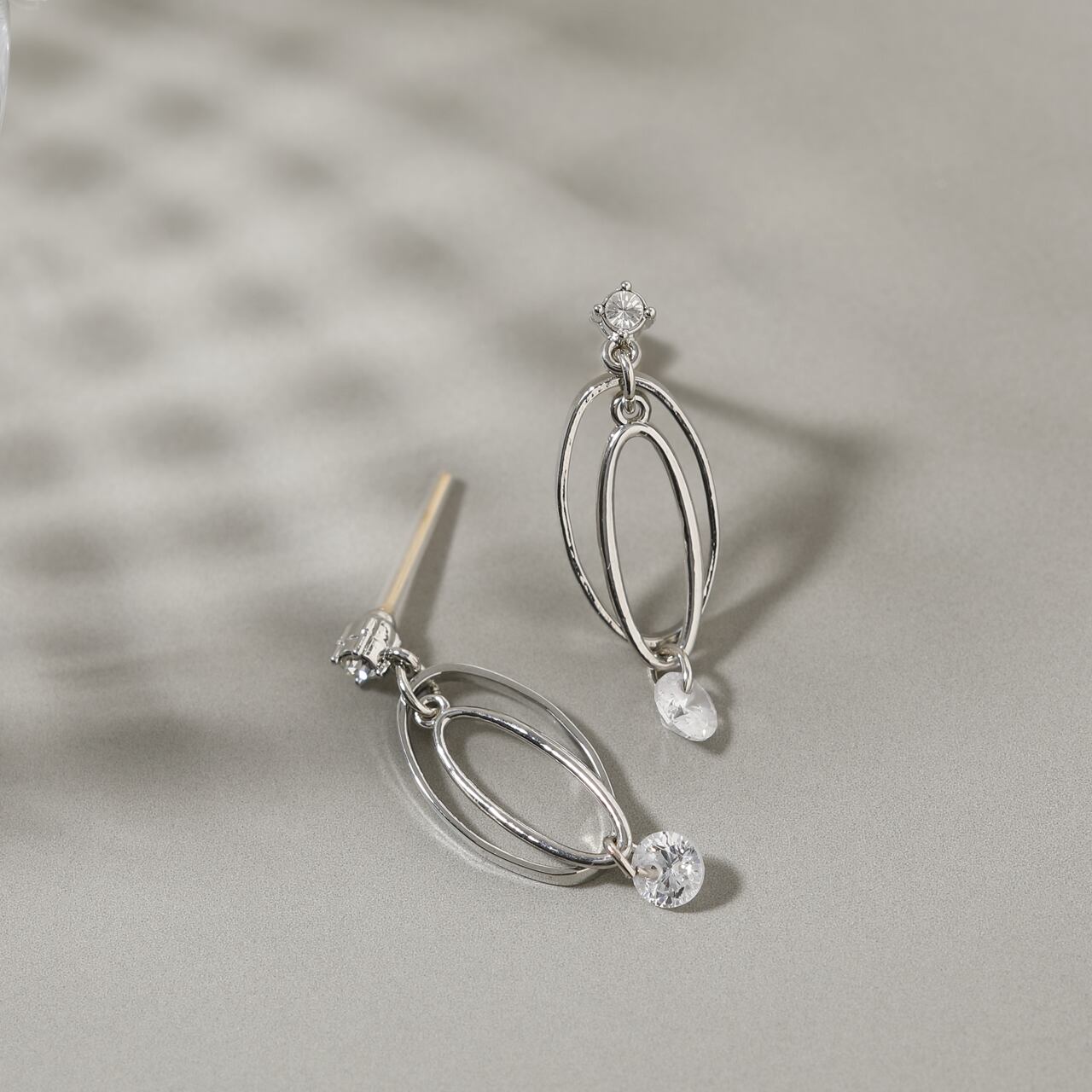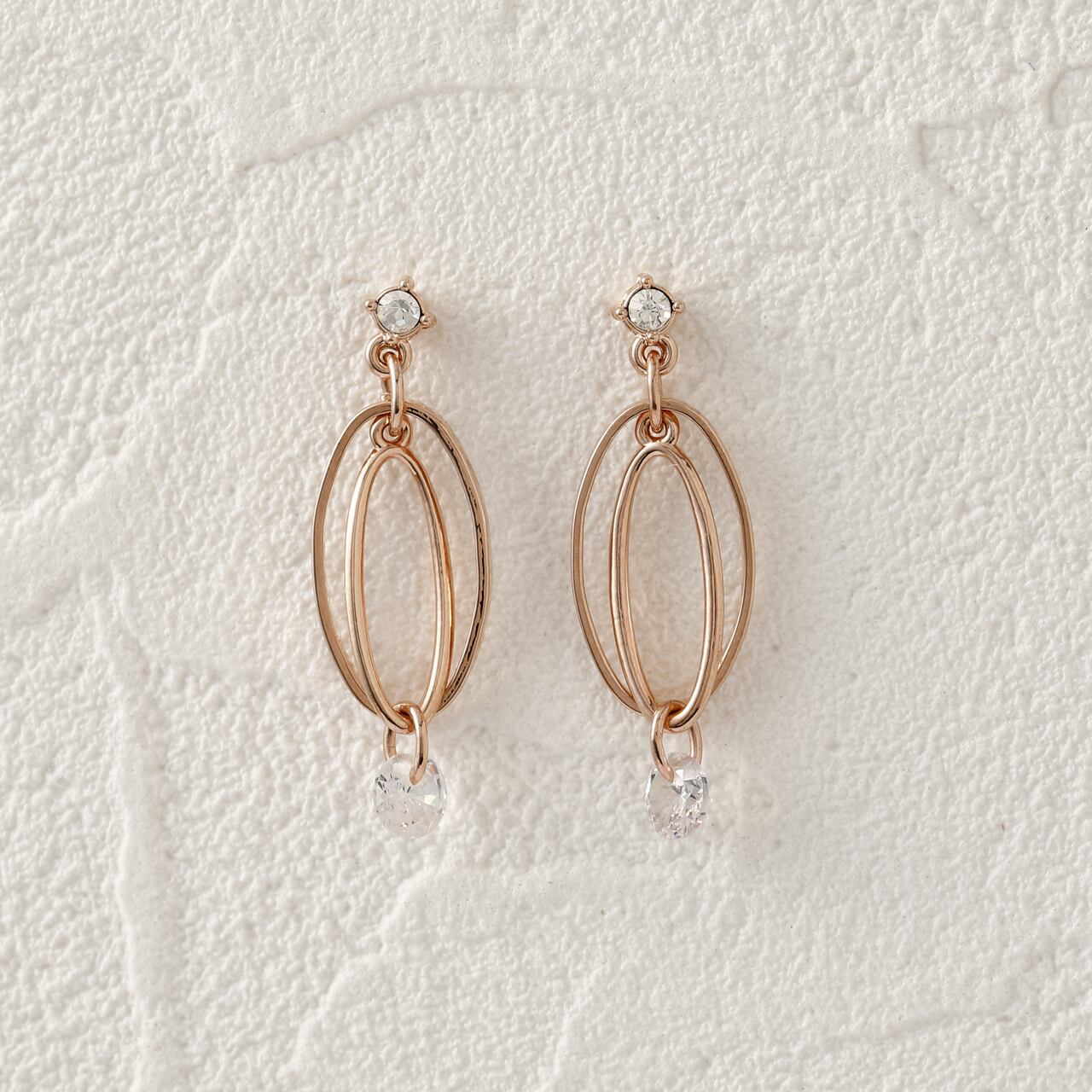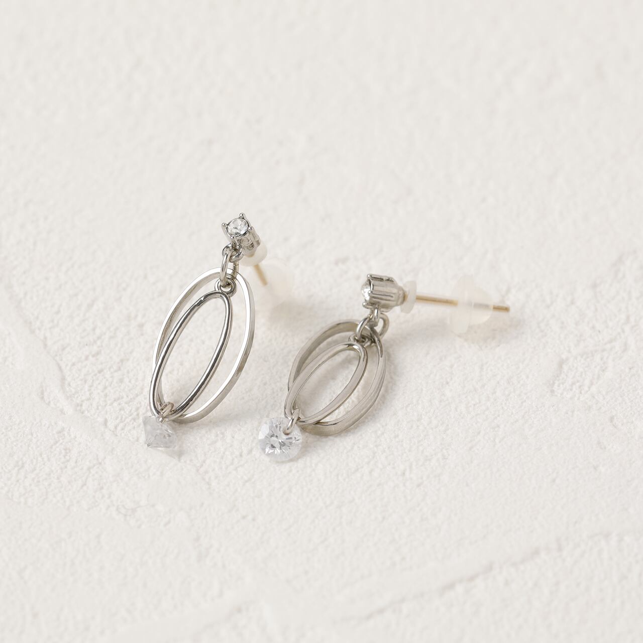二つ重ね、きらめくキュービックジルコニアを揺らしたピアスです。