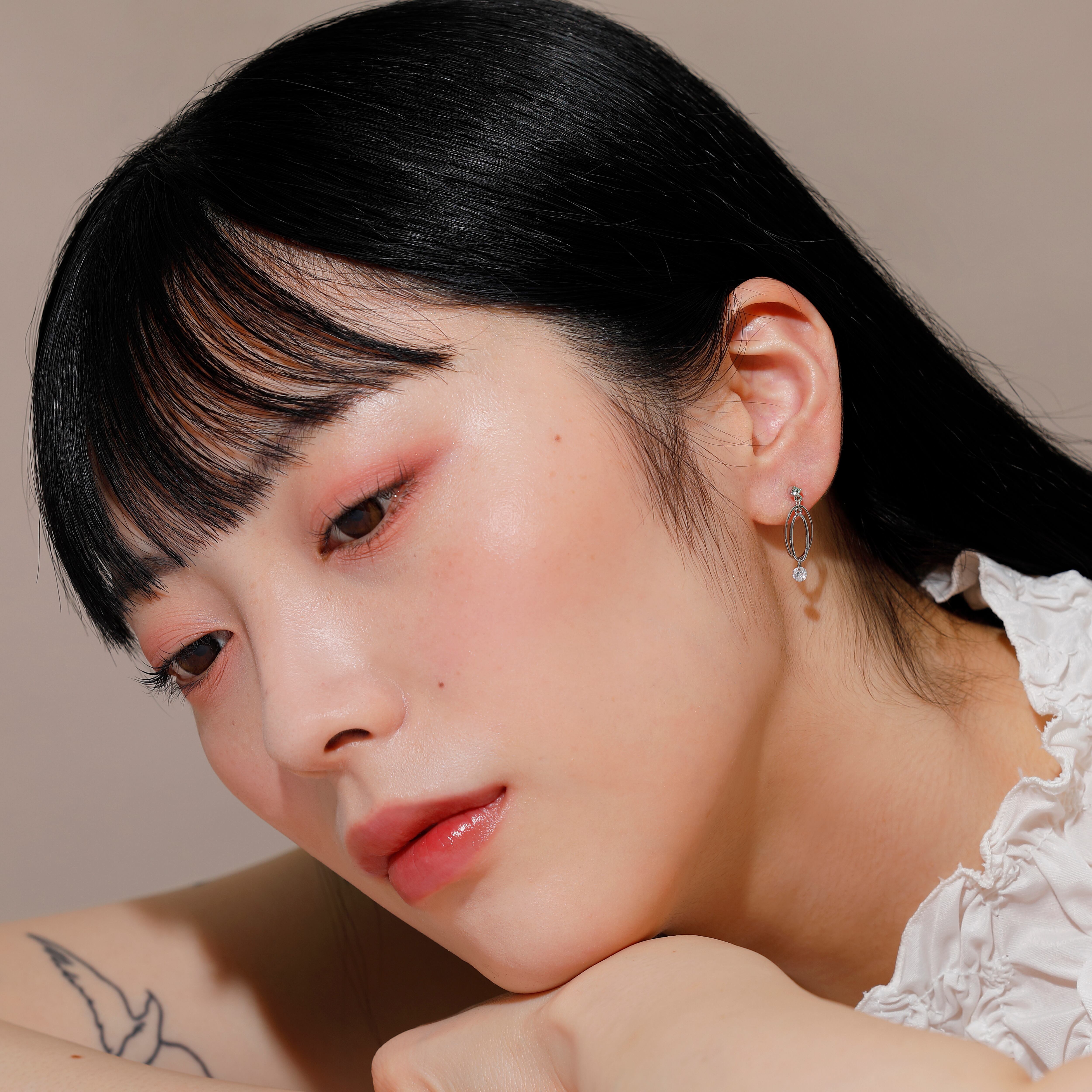 下部に揺れるキュービックジルコニアのカットが美しく、瑞々しいきらめきを生み出します。